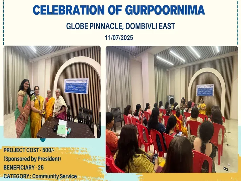 The Guru Pournima celebration was held with great devotion and enthusiasm. Mrs. Madhuvanti Phadke, our esteemed speaker, was felicitated and shared inspiring insights on the significance of Guru Pournima, the qualities of an ideal Guru, and a true disciple’s role. Her words deeply inspired members and strengthened respect for Gurus.