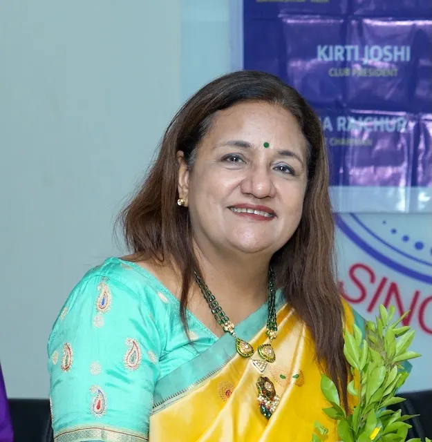 My name is Sharvari Joshi. I completed my primary and secondary education in Indore and Baroda, followed by my graduation in Vocal Music from M.S. University, Baroda. Since childhood, along with music, I have had a deep interest in various art forms such as painting, dance, rangoli, embroidery, and knitting, and I continued nurturing these skills over the years. After my marriage, when I moved to Mumbai, these artistic pursuits grew even further, especially singing and embroidery, which have always been my passion. I went on to learn various Indian and international embroidery styles and started a small business creating and selling embroidered sarees, dresses, bedsheets, cushion covers, and fabrics. One of my most unique creations includes intricate embroidery on dried leaves. With a strong inclination toward social service, I joined the Inner Wheel Club in 2015. Working across different positions connected me with people from various walks of life, giving me the opportunity to learn from them while also contributing in meaningful ways. This journey has been one of gaining joy through learning and sharing that joy by giving back to society.