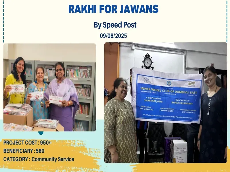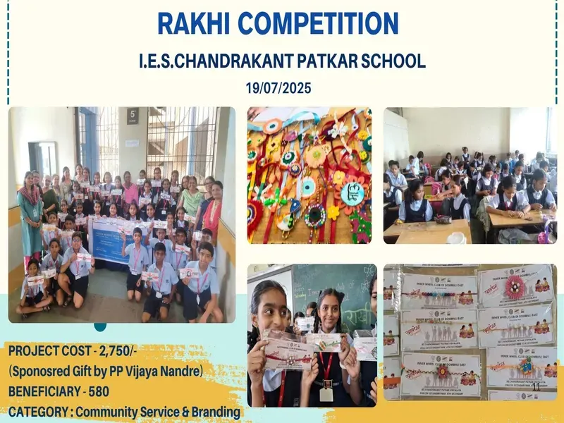 IWC Dombivli East conducted a meaningful “Rakhi Competition” on 19th July 2025 at Chandrakant Patkar School. A total of 590 students participated, crafting creative rakhis using pulses, pistachio shells, Tulsi seeds, wool, and more—each dedicated to our brave soldiers. Sixteen best rakhis were selected, and the winners received appreciation folders. A beautiful blend of art, patriotism, and heartfelt gratitude.