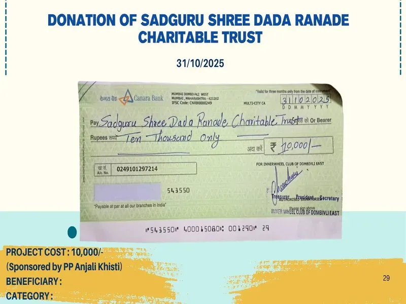 Rs. 10,000/- Donation of Sadguru Shree Dada Ranade Charitable Trust