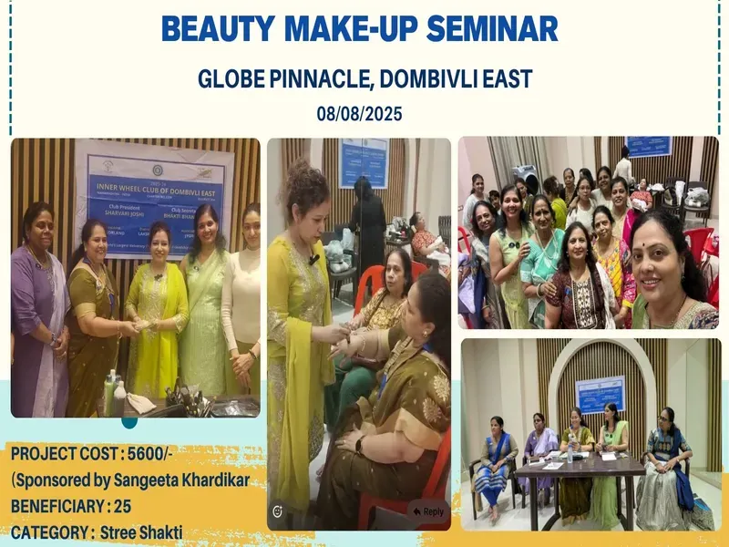 A seminar on beauty and self-care was conducted on the topic “Definition of Beauty – How to Enhance Skin and Hair Beauty, along with Makeup Demonstration.”Club member Mrs. Sangeeta Khardikar and her daughter Karishma guided the session, explaining concepts of beauty, tips for skin and hair care, and showcasing a live makeup demonstration. The entire program was conducted in an enthusiastic and cheerful atmosphere filled with engaging discussions and joy.